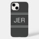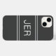 O design personalizado do na moda apresenta até três iniciais de letras em negrito em uma fonte branca sombreada em um plano de fundo de cinza carvões contemporâneos. O fundo é dividido em três por duas faixas correspondentes, acima e abaixo das iniciais. A simples utilização da modelo moderna permite uma personalização fácil. Envie um email para beachpausedesigns@gmail.com ou use o link de mensagem nesta lista com perguntas ou solicitações de cores personalizadas.