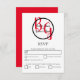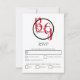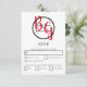 Esta design apresenta uma elegante mas simples disposição das iniciais personalizadas da noiva e do noivo. Os nomes dos casais estão cercados com um anel preto e colocados sobre as iniciais de nome próprio da noiva e do noivo, que são exibidas na tipografia vermelha. Este design vermelho, preto e branco é simples, mas elegante em todos os sentidos. O inverso exibe um fundo de cor vermelha. A combinação de cores cria um estilo sofisticado, moderno e chic. Design de cartão de resposta RSVP de casamento elegante com elementos modernos. A configuração simples da tipografia lhe dá um estilo distinto. Os convites de casamento e outros artigos de papelaria também estão disponíveis.