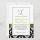 Inicial branca preta verde L convite de casamento