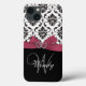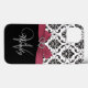 Esta cor damasco preto e branco monograma tem uma foto desse design embutida no cobrir plástico do duro. O design é composto por uma cor damasco preta e branca, um arco e fita cor-de-rosa impressos, dois corações com diamantes e uma parte inferior preta onde você pode adicionar seu nome e monograma inicial em lindas fontes de script. Seja na moda e menina ao mesmo tempo. Design por Elke Clarke©. Gráficos licenciados para uso.