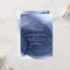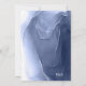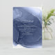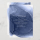 Um fundo abstrato que lembra a tinta líquida em tons de azul marinho profundo a ciano e branco é o pano de fundo para o elegante texto manuscrito e layouts de design modernos nas peças desta bela suíte de casamento. O menu de casamento mostrado aqui apresenta o acima e uma modelo para adicionar suas próprias informações pertinentes sobre o evento. Procure ID762 para ver todas as peças de coordenação neste conjunto.