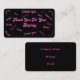 Saia com este cartão "Obrigado pela sua empresa", cor-de-na moda rosa e preto, projetado para os vendedores da Amazon ou eBay. Perfeito para pequenos pacotes, ele oferece uma maneira chic de obrigado para seus clientes. Personalize as costas com os detalhes de sua empresa para uma apresentação elegante e profissional.