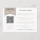Adicione um toque elegante à sua papelaria de casamento com esta Inserção de Cartão de Casamento de Código QR de Tan Preto Elegante. Esta coleção de Cobrir do Vintage Library Book certamente apelará aos ventiladores favoritos com um design de inspiração Floral Damask Fleur. Perfeito para um Casamento Real, Partido Bridal Vitoriano ou Tema de Contato de Adultos Salvem os Convites de Data. Com tudo o que você precisa para sua festa de aniversário, noivado ou relógio, esses convites e suprimentos de festas são projetados para impressionar. Entre em contato conosco para coordenar suprimentos de festas, decoração, louças ou favores dentro de 48 horas!