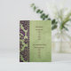 Este design de casamento equilibra delicadamente a simplicidade com a complexidade, um design contemporâneo inspirado pelo velho damasco floral. Uma borda de damasco impressionante e exótica, que lembra rendas, coalhada e varreduras em pincéis, misturando-os a púrpura de berinjela até uma borda de diamante. Além disso, contra um fundo verde-oliva sutil, flectado e manchado, a formulação de convite brusca fará uma declaração ousada, alternando entre eterno, todos os bonés e toques clássicos de guião, em castanho profundo. Toda a redação é personalizável; se você tiver problemas para personalizar ou tiver problemas com o dimensionamento ou a colocação, basta clicar em "Personalizar!" acima.