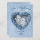 Convites bonitos e elegantes com rosas de aquarela em tons de azul em forma de coração permitem inserir uma foto de casal. NOTA: É melhor usar uma foto em preto-e-branco e já existe um filtro azul no lugar para suavizar a imagem para se misturar bem com o convite. Veja os produtos correspondentes para esta coleção de casamento Personalize a frente e o verso com suas informações