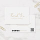 Placa de inserção de ordens comerciais em ouro falso moderno com um layout simples e minimalista com "Obrigado" na frente, em uma tipografia elegante de script. A parte traseira tem o nome e o título da sua empresa junto com o seu código QR, ícones de mídia social e sua mensagem/desconto pessoal. Este cartão de inserção profissional é excelente para qualquer pequena empresa.