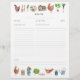 Uma inserção de pasta de receita de papel rústico com um frango de mercado de agricultores e outros elementos pintados à mão, verso de receitas de família de livro de receitas. Arte original de Caroline Bonne Müller