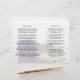 Esta bela inserção foi projetada para coordenar com nosso programa dobrado correspondente. Tem bastante espaço para hinos, orações, ou qualquer outra informação que seus hóspedes possam precisar. O trabalho de arte apresenta um adorável rosa púrpura de ametista como uma marca d'água, para que o texto possa se estender sobre a imagem. Excelente modo de expandir seus programas de casamento! NOTA: esta inserção é fornecida como uma folha plana e precisará ser dobrada. Há uma escolha de papéis e sugerimos que se evite o semibrilho, pois é um estoque fino de cartão que é difícil de dobrar manualmente.