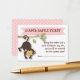 Um jogo divertido para você incluir no convite para o chá de fraldas que acolhe convidados para serem inseridos em um rifle, se eles trazerem um pacote de fraldas junto com eles para o chá de fraldas. Uma linda garotinha de macaco, bebê pendura brava de um galho florescente. O esquema de cor rosa e branca do bebê pastel irá coordenar-se com qualquer convite a chás de bebês também.