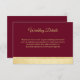 Cartões de inserção de detalhes de casamento elegantes e modernos em topografia dourada e borgonha, marsala, grená, vermelho profundo. A cor do fundo pode ser alterada. Modelos editáveis - adicione seu texto. Entre em contato com o designer para outras variações. Perfeito para a coleção de casamentos de OUTONO.