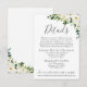 Avise aos seus hóspedes sobre os detalhes do casamento com nossa flor branca e detalhes do casamento verde. O texto é completamente personalizável - se você precisar alterar a fonte, a cor da fonte, o tamanho ou o posicionamento das caixas de texto, basta clicar no botão "Clique para personalizar mais" para alterar esses itens. Certifique-se de verificar nossa grande seleção de itens coordenadores navegando na coleção de Casamento Floral Branco Moderno!