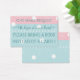 Inserir cartão/personalizar "Baby Peek-a-Boo Pink/Blue" Inserir livro com "Baby Peek-a-Boo Pink/Blue" Aproveite este pequeno cartão de inserção de "Livro Trazido" para diversão de chá de fraldas. Este design "Baby Peek-a-Boo Pink/Blue" de dois lados é fácil de personalizar na frente e atrás. Simplesmente exclua o texto e adicione sua própria mensagem. Escolha seu estilo, tamanho e cor de fonte favoritos. Esta coleção "Baby Peek-a-Boo Pink/Blue" também tem livrarias, convites, adesivos correspondentes e muito mais. Obrigados para parar e comprar. Sempre apreciado! Feliz Chá de fraldas!! Tamanho: Cartão de visita do tamanho europeu, 3,346" x 2,165" No que se refere à sua empresa, não espere por oportunidade, crie-a! Faça uma impressão duradoura com cartões de qualidade que WOW. "Standard European Cartão de visita Size", ideal para os nossos amigos da UE! Dimensões: Processo de impressão CMYK a cores de 3,346" x 2,165" do Cheio de  CMYK para nenhum custo adicional, garantia de 100% de satisfação Tipo de Papel: Matriz Padrão A clássico, em volta de papel com uma sensação natural e um acabamento de mate não revestido; nossa Matriz Padrão é o teste do tempo. Elegante e subestimado, cores impressão mais suaves e mais sutis. Espessura de 17,5 pt / peso de 120 lb / acabamento branco claro, não revestido, com uma textura de casca de ovo é fácil de escrever e não borra Made e impresso nos EUA