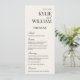 Inserto de menu de casamento para guardanapo de linho dobrado