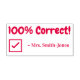 Este design de carimbo encorajador apresenta a mensagem inspiradora "100% correto!" e o nome de um tutor personalizado. Também apresenta uma marca de verificação decorativa. Ele poderia ser usado por um professor de escola, educador ou orientador ao formando o trabalho estudantil, para reconhecer que um aluno fez um trabalho excepcional.