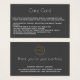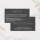 Você criou uma bela joia e quer que seu cliente esteja satisfeito. A inclusão de um cartão de assistência no seu pedido é uma excelente maneira de instruí-los sobre a melhor maneira de cuidar do seu item feito à mão. Este cartão de informações é fácil de personalizar com informações específicas à sua linha de produtos. Adicione seu logotipo no sentido inverso, assim como informações de contato. Se você não tiver um logotipo, exclua o ícone e adicione o nome da sua empresa. Ideal para vendedores online e pequenas empresas. Este cartão de informação pós-compra está sobre um fundo branco com escrevendo dourado. Os produtos correspondentes para a sua empresa de joalharia artística estão disponíveis.