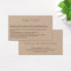 Você criou uma bela joia e quer que seu cliente esteja satisfeito. A inclusão de um cartão de assistência no seu pedido é uma excelente maneira de instruí-los sobre a melhor maneira de cuidar do seu item feito à mão. Este cartão de informações é fácil de personalizar com informações específicas à sua linha de produtos. Adicione seu logotipo no sentido inverso, assim como informações de contato. Se você não tiver um logotipo, exclua o ícone e adicione o nome da sua empresa. Ideal para vendedores online e pequenas empresas. Este cartão de informação pós-compra está sobre um fundo de papel Kraft com escrevendo marrom escuro. Os produtos correspondentes para a sua empresa de joalharia artística estão disponíveis.