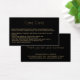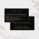 Este cartão de informação pós-compra está sobre fundo preto com escrevendo dourado. Os produtos correspondentes para a sua empresa de joalharia artística estão disponíveis.