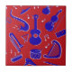 Esta design é uma mistura de diferentes instrumentos musicais em azul e branco com um fundo vermelho. Esta imagem está disponível em uma variedade de outros produtos, basta clicar no link abaixo da foto perto de 'Sobre este Design'.