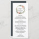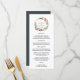 Nosso menu de casamento sofisticado apresenta seus pratos de entrada, principais e sobremesas em letras elegantes, com seus nomes circulados por uma grinalda botânica verde de flores de inverno em aquarela, poinsettia e pinhas. Coordena com nossa coleção de casamento Mystical Winter.