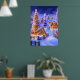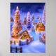 Uma vila de pão de gengibre na montanha de neve, neve no telhado, árvore na vila, uma legal arte única em uma paisagem de inverno com estrelas no céu. Esta é uma arte gerada por IA.