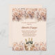 Um convite moderno, na moda e glamouroso para um Chá de panela. Creme, fundo colorido de pêssego, decorado com uma cesta de flautas, frascos de vinho espumante e beige, flores coloridas de creme. Personalize e adicione os detalhes da sua festa. 1 folha = 1 convite impresso de borda a borda.