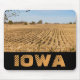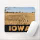 Vista panorâmica de um campo de cornê de Iowa com texto "IOWA".
