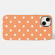 uma capa de telefone forte e protetora para o iPhone 14 mais em bolinhas doces, frescas e laranja.
