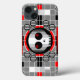 O padrão legal do cartão de teste de TV retrô inspirou um design com um crânio estilizado e ossos cruzados em tons de preto, branco, cinza e vermelho. Um design personalizável para você personalizar com seu próprio texto, imagens e ideias. Uma imagem de arte digital original criada por Jess Perry.