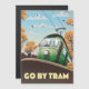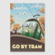 Ir por Tram, poster de viagens de cartoon vintage com um antigo Tram vintage.