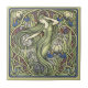 This Art Nouveau tile design features a long-haired female figure surrounded by arrangement of irises and flowing botanical curves. The palette blends sage green, royal blue and touches of violet for a beautifully layered, painterly look. Sweeping tendrils give the composition its signature Art Nouveau movement and grace. Richly detailed yet soothing in tone, this design captures the enchanting, nature-driven artistry of the era. Search ID1193 to see other tiles in this unique design set. Note: design may contain generative content