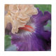 Azulejo cerâmico que apresenta a imagem de uma íris de dois tons com floração roxa e pêssego junto com barba laranja. Um design floral adorável! Selecione o tamanho do seu azulejo. Faz uma bonito trivet de cozinha!
