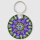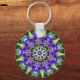 Um design do kaleioscópio com íris roxa contra grama verde.