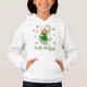 Anjo Irlandês Adorável vestindo vestido verde e jogando sortudos Shamrocks no ar. Um desenho encantador para qualquer momento, mas perfeito para Ruas. O texto diz Irish Angel.
