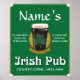 Pegue este design de pub irlandês divertido para o seu irlandês favorito. Personalizado lê seu nome de pub irlandês, se você é irlandês, você é uma da família - Se não, somos bebados demais para nos importar! No centro há uma grande pinta de stout com uma fachada de shamrock na frente e no centro. O pergaminho de baixo lê falha da velocidade da milha, o que significa cem mil boas-vindas em gaélico! Personalize este design com o seu nome e também com o condado da sua escolha. Um fantástico poster irlandês para ter na próxima festa de Rua Pattys ou para carregar em um desfile de Dias de São Patrícios irlandeses!