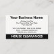 Cartão de visita do Office and House Clearances com um Código QR no verso.