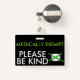 Exiba este crachá somente se estiver legitimamente isento de vestir uma máscara ou outro revestimento facial de acordo com as leis e diretrizes locais. Vestir uma máscara onde e quando você for capaz ajuda a retardar a propagação e salvar vidas.
