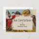 Esse antigo impressão cromolitógrafo apresenta Isidore, o Elf vestido de vermelho e verde com um gigantesco colarinho recheado. Ele está rodeado de animais selvagens dos hemisférios norte e sul. O cartão anunciava uma farmácia em Ohio. O painel central agora permite ampla margem para sua mensagem ou personalização. Esta é uma imagem excelente para anúncios e convites infantis.