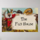 Esse antigo impressão cromolitógrafo apresenta Isidore, o Elf vestido de vermelho e verde com um gigantesco colarinho recheado. Ele está rodeado de animais selvagens dos hemisférios norte e sul. O cartão anunciava uma farmácia em Ohio. O painel central agora permite ampla margem para sua mensagem ou personalização. Esta é uma imagem excelente para anúncios e convites infantis.