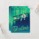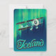 Poster de viagens ao estilo da Islândia, dos Nortes e de uma aeronave ligeira que passou.