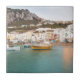 Um azulejo bonito para o uso em torno de uma pintura do porto grandioso em Capri, Campania, Italia.