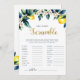 Unscramble the fun with this "Ciao Baby" Lemon Wreath Baby Shower Word Scramble Game Card! Guests race to decode 20+ jumbled baby-related words (like "bottle," "diaper," ) while surrounded by a vibrant watercolor wreath of fresh yellow lemons, soft green/blue leaves, white blossoms, and gold accents — evoking sunny Amalfi Coast groves, Positano charm, and Mediterranean Italian vibes. Includes an answer key for easy hosting!