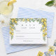 Elevate your summer wedding with this elegant Italian Mediterranean themed RSVP card. It features a lush border of watercolor lemons and green foliage paired with a preppy blue and white striped reverse. This design is perfect for couples hosting an Amalfi Coast destination wedding or a citrus themed garden celebration.