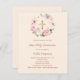 A soft ivory blush background, decorated with watercolored pink and white flowers in a wreath and a golden cross. Personalize and add a name and details.