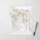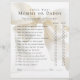 A fun baby shower game to use at your shower, Guess Who - Mommy or Daddy invites your shower guests to answer a list of questions about which parent will do certain things first, etc. Have the parents fill out their responses in advance on one of the game sheets and use that as the method of scoring the answers of your guest. Whoever gets the most answers correct wins a prize! This game sheet is embellished with an elegant watercolor ivory bow and a neutral ivory and white stripes pattern on the back to coordinate with a beautiful baby shower collection.