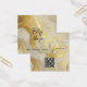 An elegant business card with a faux ivory marble and gold glitter background featuring space for your name, profession, social media handle, website, mailing address and phone number. This design includes a QR code on the back.