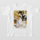 Jack no t-shirt do Beanstalk pelo conto de fadas 1918 dos irmãos de Grimms do vintage de Arthur Rackham com um Rackham gigante é um artista conhecido para fadas, ogres, bruxas, imps, sprites, duendes, troll, gnomos, gigantes, dragões e criaturas da fantasia. Ilustrou muitos livros de crianças assim como os clássicos como Shakespeare, CInderella, nevam óperas do branco, do Wagner, e vento nos salgueiros. Era igualmente um artista de Nouveau da arte. Rackham regained a popularidade nos anos 60 e nos anos 70. Hoje seu é é considerado vintage.