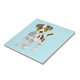 Este azulejo cerâmico encantador mostra meu desenho de Jack Russell Terrier Puppy. O Jack Russell é branco com manchas marrons e um rosto marrom e branco com grandes olhos atraentes contra um fundo azul claro. Este azulejo faria um presente adorável para um amante JR e uma bela adição para uma mesa de café.