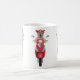 Jack bonito super Russell Terrier que monta em um moped vermelho com a caneca de café dos óculos de proteção. Ilustração tirada mão por McBooboo