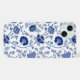 O estilo Jacobean do padrão da superfície floral design em blues contrastantes num fundo branco.