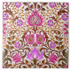 Azulejo cerâmico numa vintagem William Morris jacobean padrão floral, melhorado digitalmente e colorido, em rosa fuchsia, violeta roxa e chocolate castanho, sobre fundo branco